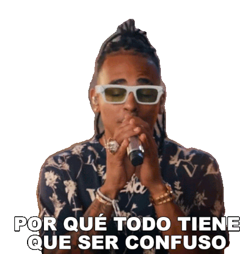 Ozuna, the reggaeton superstar, sings into a microphone with a confused expression, asking 'Why does everything have to be confusing?'
