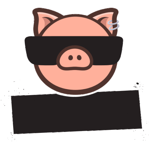 A cool cartoon pig wearing sunglasses with the text 'Pork N Rol' appearing and disappearing.