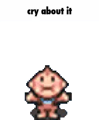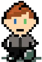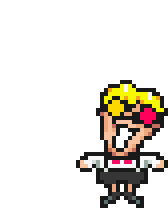 Porky Minch, the iconic character from the EarthBound series, animated in pixel art style, looking manic and excited.