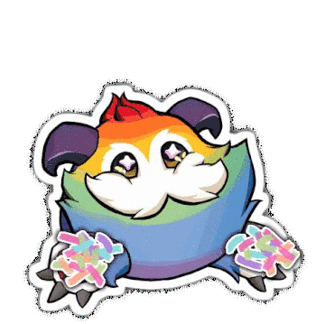 A cute Poro from Freljord celebrates with a festive confetti toss emote, perfect for League of Legends fans.