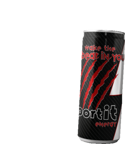 A dynamic sticker featuring a Portit energy drink can with the slogan 'Wake the Bear In You' and striking claw marks design.