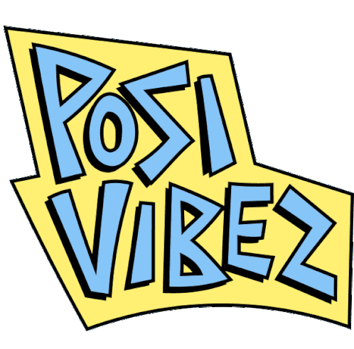 Martina Martian's vibrant Posi Vibez sticker, featuring bold yellow and blue text for positive energy and good vibes.