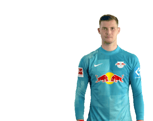 Josep Martínez, the RB Leipzig goalkeeper, confidently poses with his arms crossed, showcasing his team's jersey.