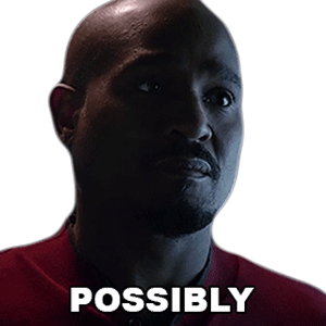 Alan Deaton, played by Seth Gilliam from Teen Wolf, looks thoughtful with the word 'Possibly' overlaid.