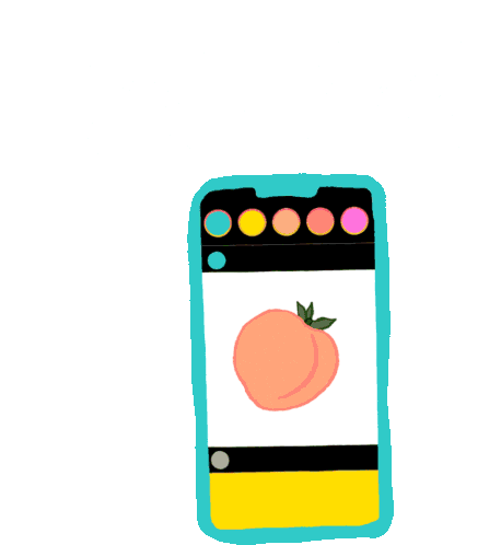 An animated sticker showing a peach on a phone screen, transforming into a heart-shaped peach and back, perfect for social media posts.