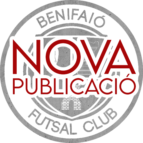 Animated sticker featuring the circular logo of Benifaió Nova Publicació Futsal Club, with red text on a grey background.