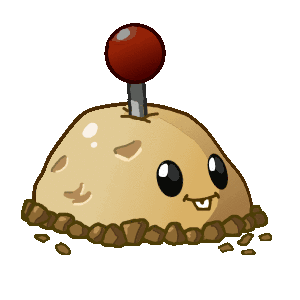 The Potato Mine from Plants vs. Zombies animates, showing a happy, smiling face with its lever.