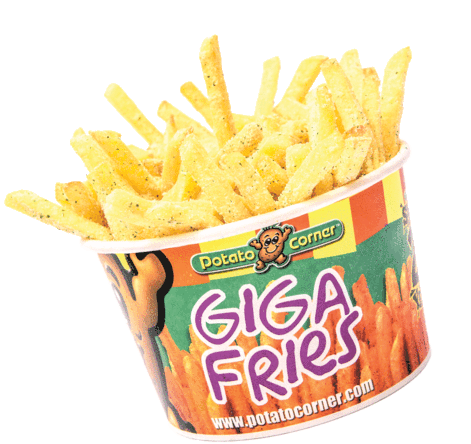 A fun animated sticker featuring the iconic Potato Corner mascot winking alongside delicious flavored french fries.