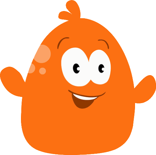 Pitch And Potch, the friendly orange blob character, wiggles and smiles, bringing a cheerful vibe to any message.