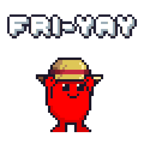 a pixel art drawing of two red cartoon characters with the words friday written above them