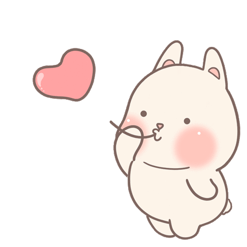 A sweet, plump rabbit character gently holds a pink heart-shaped balloon, looking content and full of love.