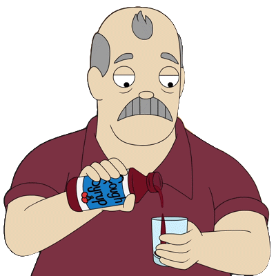 Daddie Dan, from The Harper House, sadly pours cherry cough syrup into a glass, looking tired and unwell.
