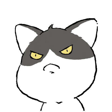 A cartoon cat-like creature with a grumpy, pouting expression and blinking yellow eyes, showing annoyance or high temper.