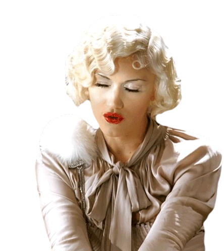 Gwen Stefani, with a glamorous vintage look, gives a seductive pout and makes alluring eyes.