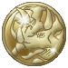 A golden Power Rangers Blue Ranger Triceratops Power Coin, featuring the detailed head of a triceratops.