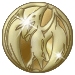 A golden coin featuring the iconic Pterodactyl Zord symbol, representing the Power Rangers Pink Ranger.