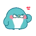The Pp Penguin Pp Mini character, a cute blue pixel art penguin, flexes its arm with an angry yet determined expression.