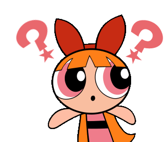 Blossom, the Powerpuff Girl, displays a range of emotions from angry and determined to confused with question marks.