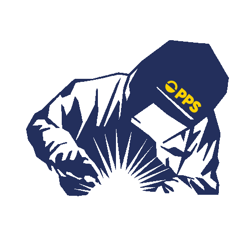 A construction worker from PPS WirVerbindenSicher welding pipes, showcasing safety and precision on the job.