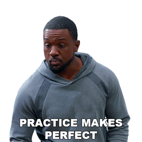 Calvin Payne, played by Lance Gross, emphasizes the importance of practice with the phrase 'Practice Makes Perfect'.