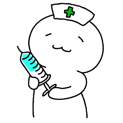 An animated sticker of a gloved hand holding a syringe with a green cross, symbolizing medical care and treatment.