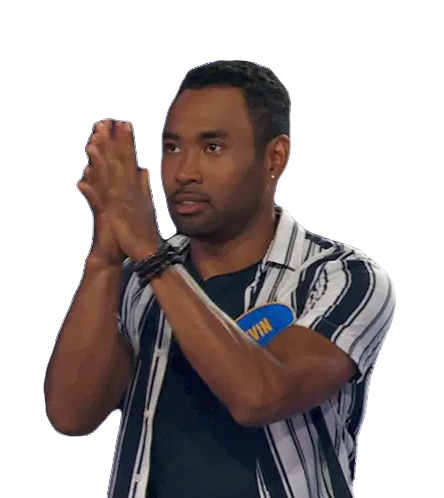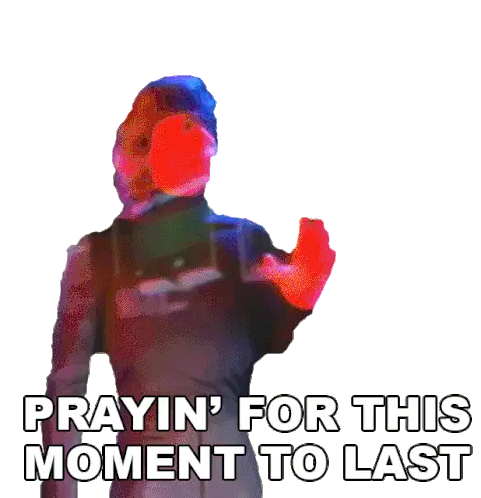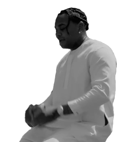 Kevin Gates in a black and white sticker, kneeling and praying with his hands clasped together, showing devotion.