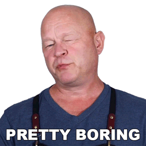 Michael Hultquist, known for Chili Pepper Madness, winks with an unimpressed expression, displaying the text 'PRETTY BORING'.