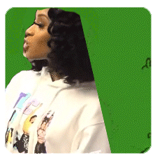 Pretty Vee from The Breakfast Club quickly disappears into a green background with a dramatic effect.