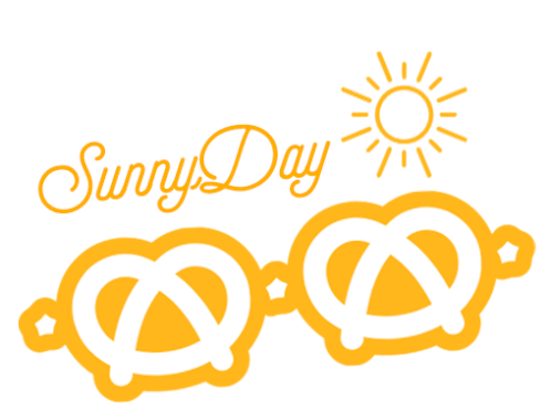 Celebrate Pretzel Day with this fun sticker featuring two pretzels, a sunny sign, and a bright sun.