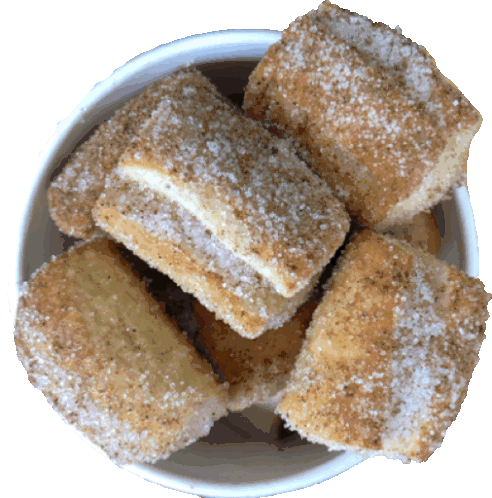 A bowl of sweet cinnamon sugar pretzel bites, salted pretzel bites, and savory pigs in a blanket.