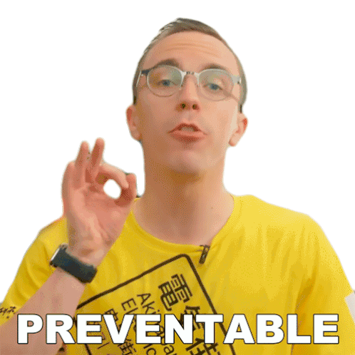 Austin Evans, the popular tech reviewer, makes an 'OK' gesture with his hand as the word 'PREVENTABLE' is displayed, emphasizing something can be avoided.