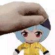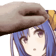 A gentle animated sticker featuring a hand softly patting the face of Rei from Princess Connect Re: Dive, with her blue hair.