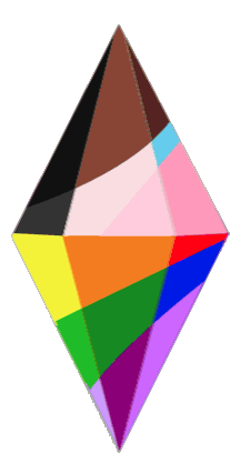 Vibrant animated plumbob sticker, celebrating Pride Month with shifting rainbow colors and a dynamic diamond shape.