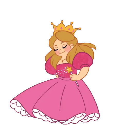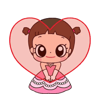 Princesa, a cute animated cartoon girl, expresses affection and delight as pink hearts float around her.