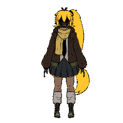 a pixel art drawing of a girl with long yellow hair and a scarf around her neck .