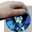 Pat Juli holds up a CD featuring a robot design, showcasing the 'Project' theme.