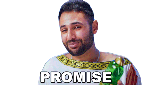 Arun Maini, also known as Mrwhosetheboss, smiles and says 'Promise' while holding a green bottle.