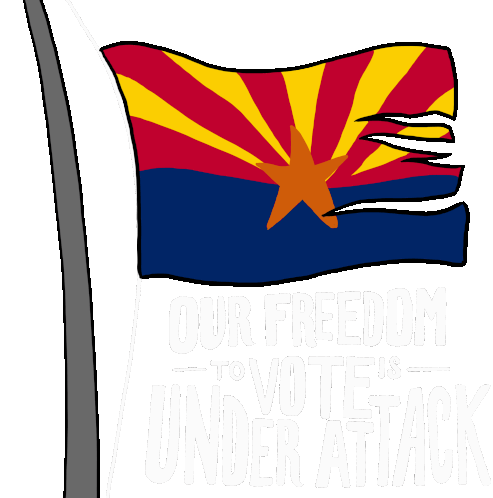 An 'I Voted' sticker with 'Protect The Vote' text, emphasizing voting rights and civic duty in Arizona.