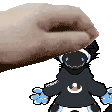 A person in a black hoodie quickly pets a Protogen character, showing fast and playful interaction.