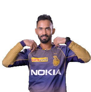 Dinesh Karthik proudly displays his Kolkata Knight Riders (KKR) jersey, showing team spirit and confidence.
