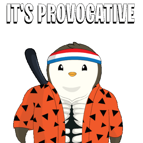 a cartoon penguin with a baseball bat and the words it 's provocative above him