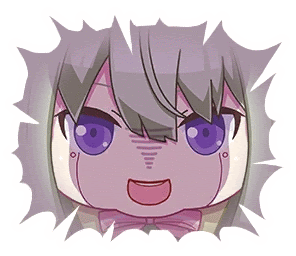 a cartoon of a girl with purple eyes and a pink bow tie .