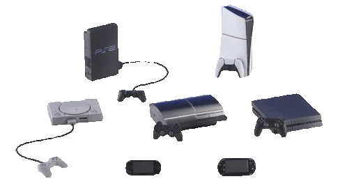 a group of playstations are lined up on a table