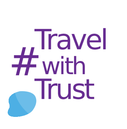 Animated sticker featuring the "#Travel with Trust" logo, representing Protected Trust Services (PTS) for reliable travel.