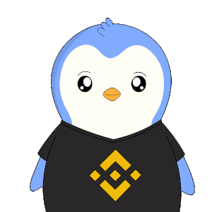 a blue and white penguin wearing a black shirt with a yellow triangle on it