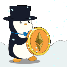 a penguin wearing a top hat is holding a coin with the word hold on it
