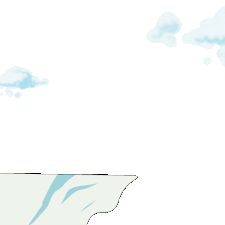 A cartoon pudgy penguin runs off a cliff, falls, and then flies away in a superhero outfit.