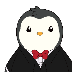 A cute Pudgy Penguin in a tuxedo with a red bow tie performs a respectful salute.