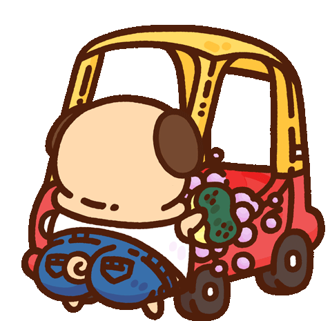 Puglie the pug enthusiastically washes a red and yellow toy car, complete with bubbles and a sponge.