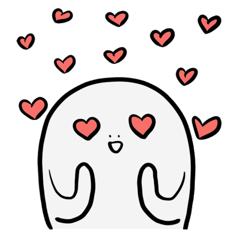 A cute, shy, white blob character with a wide smile, expressing deep affection and a pulsating heartbeat of love.